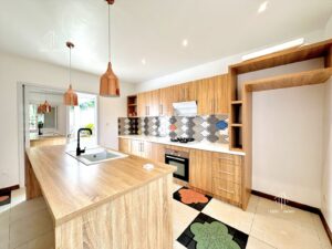 Cette belle villa neuve, située dans un quartier résidentiel calme et sécurisé, à proximité des amenities et de l’École Primaire Française C, dispose d'un living avec cuisine américaine, de deux chambres avec dressing, d'une salle d’eau commune ainsi que d'une suite parentale avec salle de bains. A l'extérieur se trouve une réserve d’eau avec surpresseur, un garage, une dépendance pour gardien.