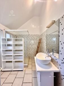 Discover this charming family villa, featuring four bedrooms, including a master suite with an en-suite shower/bathroom, a cozy living room with a working fireplace, and practical storage spaces. Outside, a wooded garden, ample parking for five vehicles, and an outbuilding with a storage room complete the property. Located in a sought-after residential area, the property also features a 10 m² cellar.