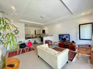 Découvrez ce bel appartement prêt à vivre, situé dans un environnement calme et sécurisé. Il comprend deux chambres placardées, un salon lumineux, une cuisine entièrement équipée avec lave-linge et deux salles d’eau avec toilettes. À l’extérieur, vous profiterez d’un agréable jardin et d’un parking. L’appartement dispose d’un compteur JIRAMA prépayé, d’une cuve à eau avec surpresseur et de la fibre optique.