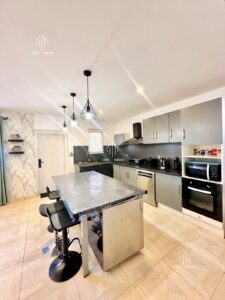 Située à Ambatolampy Tsimahafotsy, dans un quartier en plein développement, cette maison se distingue par son vaste salon, sa salle à manger prolongée par une grande terrasse aménagée et sa cuisine américaine équipée. Elle comprend trois chambres placardées, une salle de bain, des toilettes invités ainsi qu’une mezzanine aménageable en bureau. À l’extérieur, vous profiterez d’un grand jardin et d’un parking. En premier plan, elle bénéficie d’un emplacement stratégique à moins de dix minutes d’Ivato et quinze minutes d’Ankorondrano.