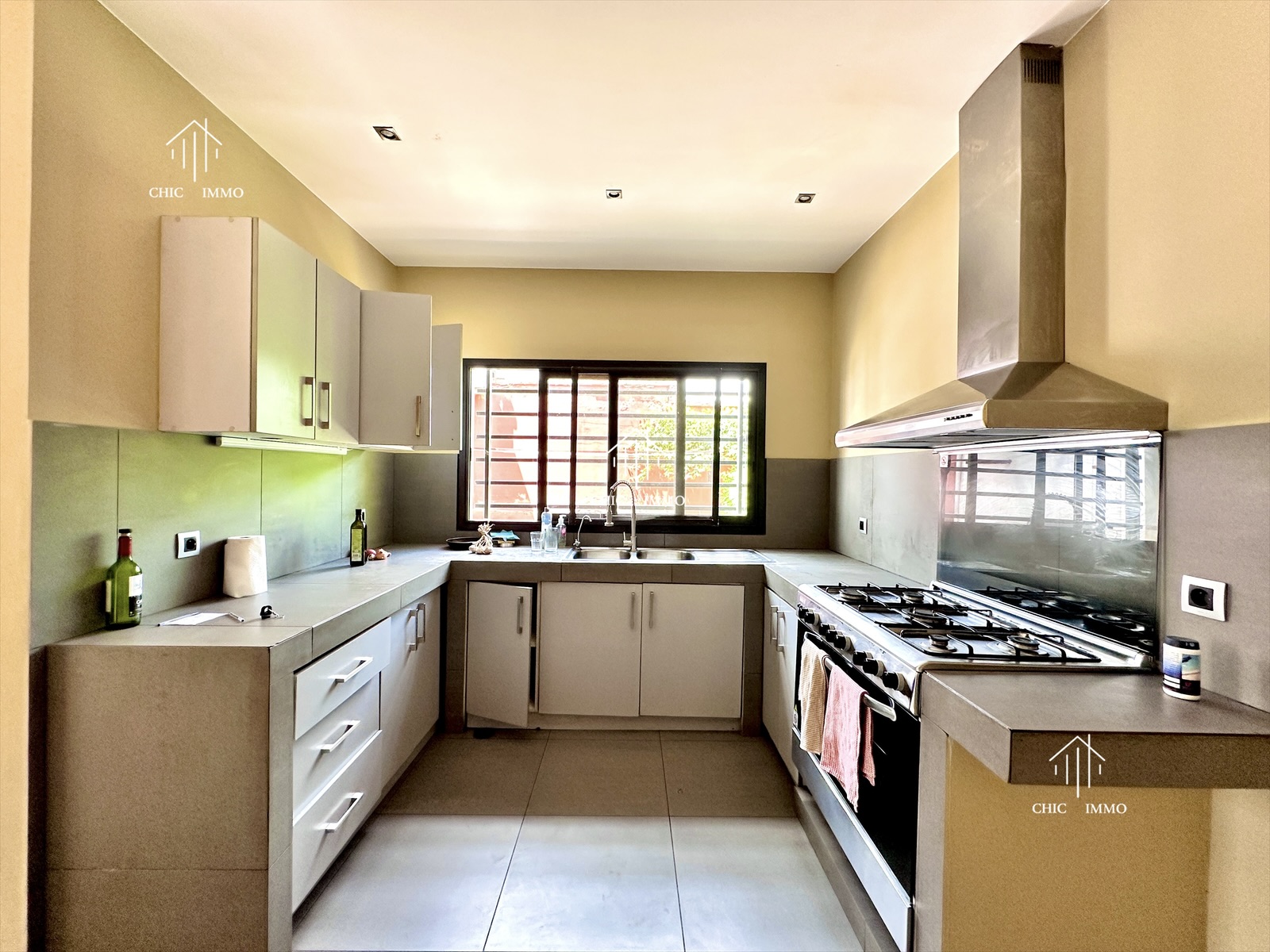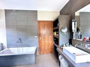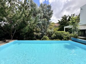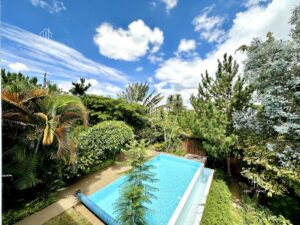 Cette belle villa située dans un environnement résidentiel recherché se compose de 5 chambres, de 3 salles d’eau / salle de bains, d’un bureau et d’un grand living lumineux avec cheminée fonctionnelle. Elle est équipée d’un groupe électrogène et dispose également d’un espace aménageable pouvant faire office de bibliothèque ou de salle de travail. Les extérieurs offrent un jardin avec piscine, une grande terrasse, un parking, un garage, un local de sécurité ainsi qu’une dépendance, assurant confort et fonctionnalité. Cette villa convient aussi bien à un usage résidentiel qu’à un projet mixte habitation, dans un quartier calme et sécurisé.