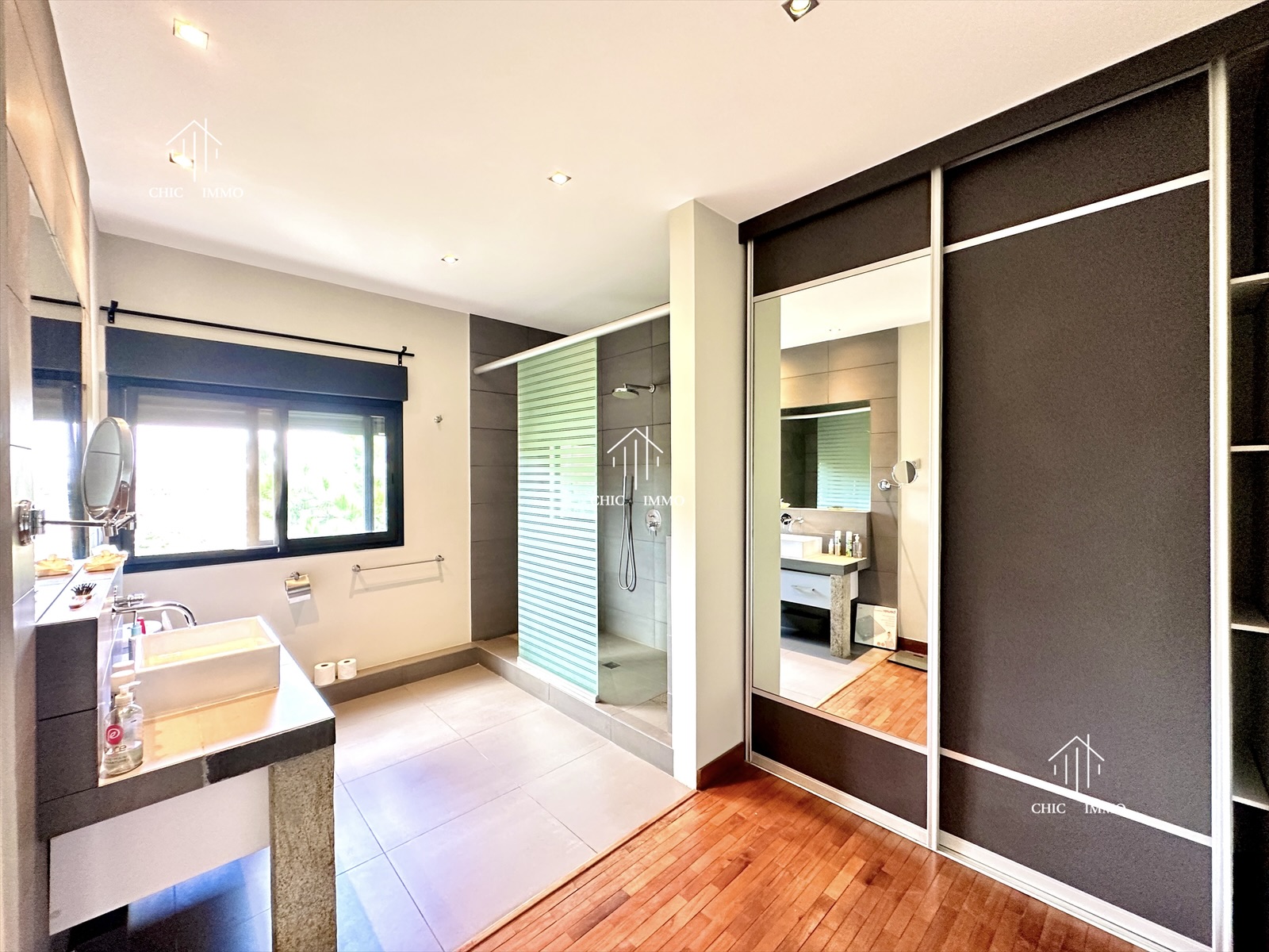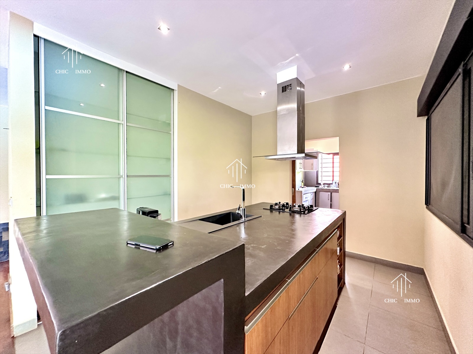 - Intérieur: Cuisine américaine, Bureau, Cellier, Toilette visiteur, Grand Living, Cheminée, Cuisine